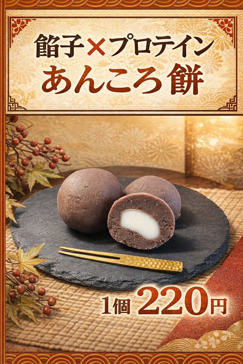 しっとりとした食感が特徴のプロテインあんころ餅が登場しました。1つにつき7gのプロテインが含まれており、美味しく食べながら栄養補給ができるのが嬉しいポイント。運動前後やおやつタイムにぴったりです。